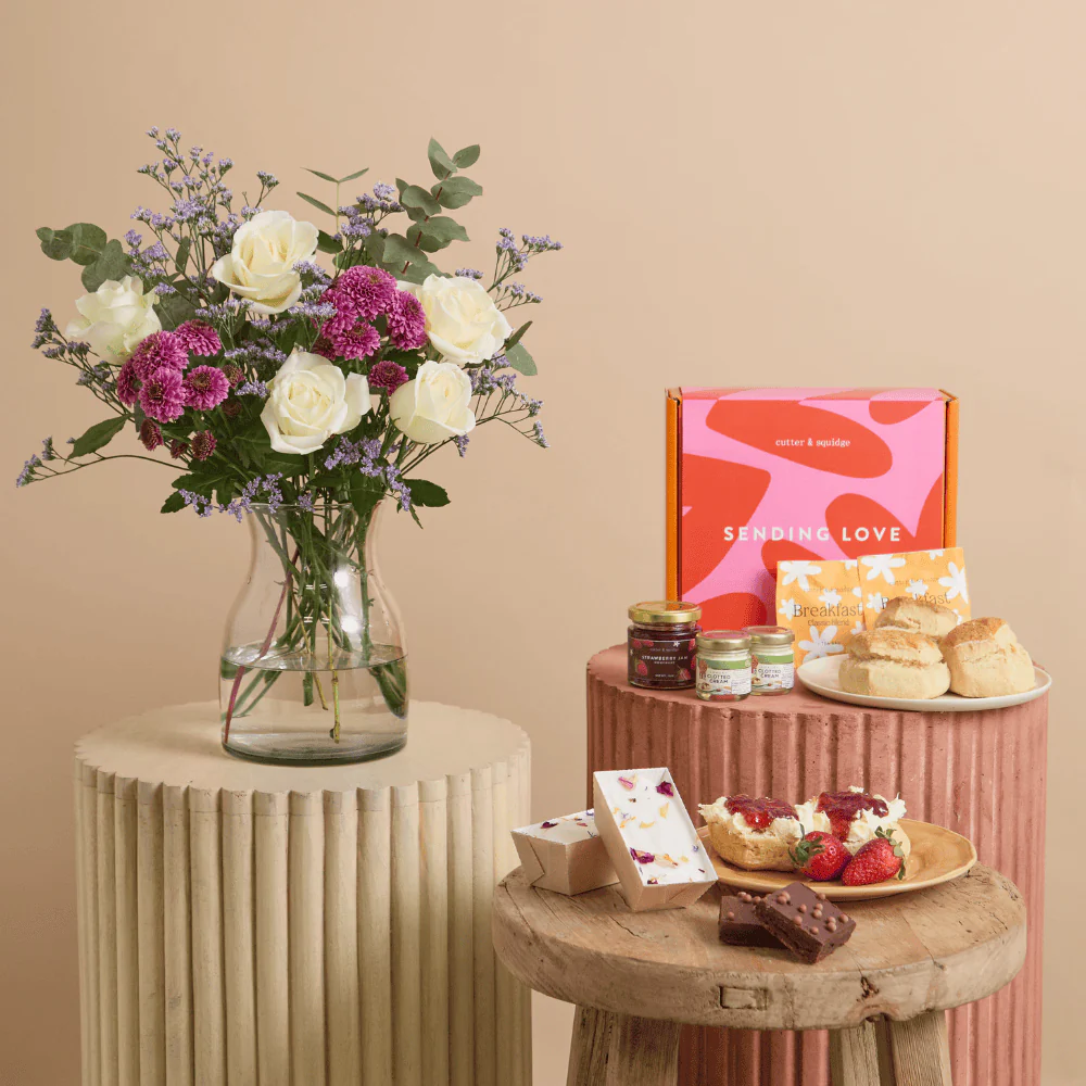 Rosie Gingham Flowers & Afternoon Tea Gift – Cutter & Squidge